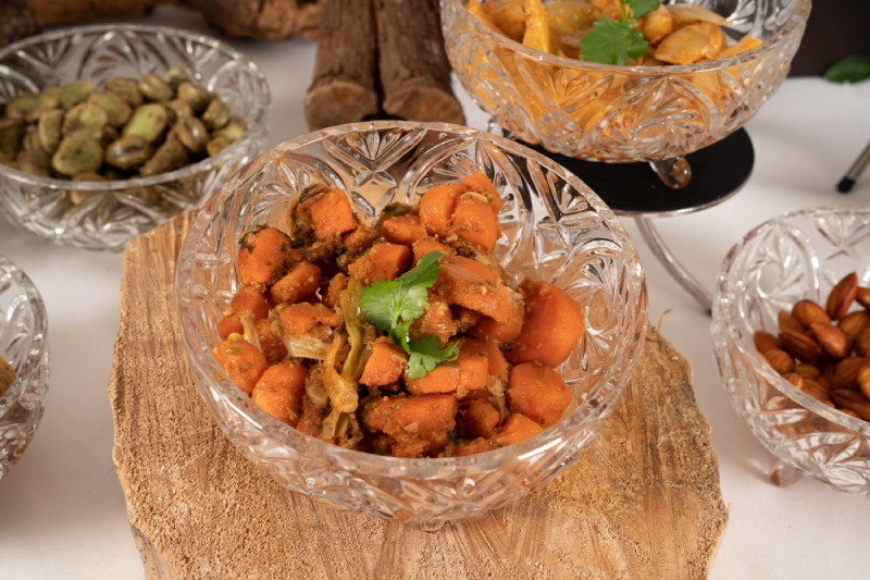 Salade de carottes et oignons nouveaux parfumé au carvi.