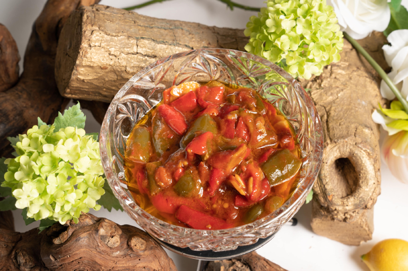 Confit de tomates et poivrons mijotés à la tunisienne.