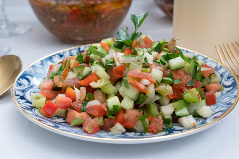 Salade traditionnelle israélienne de concombres et tomates.